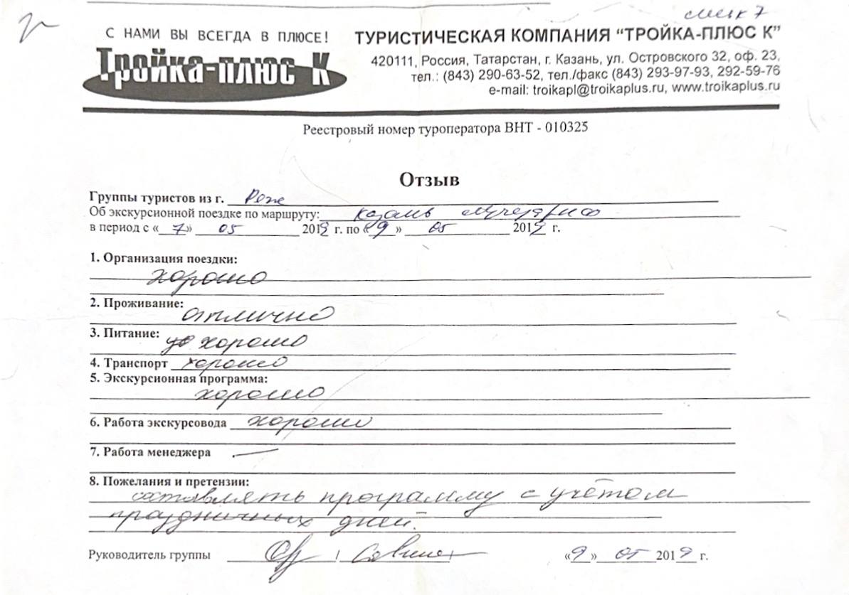 Реальные письменные отзывы туристов. Оригиналы хранятся в офисе компании.